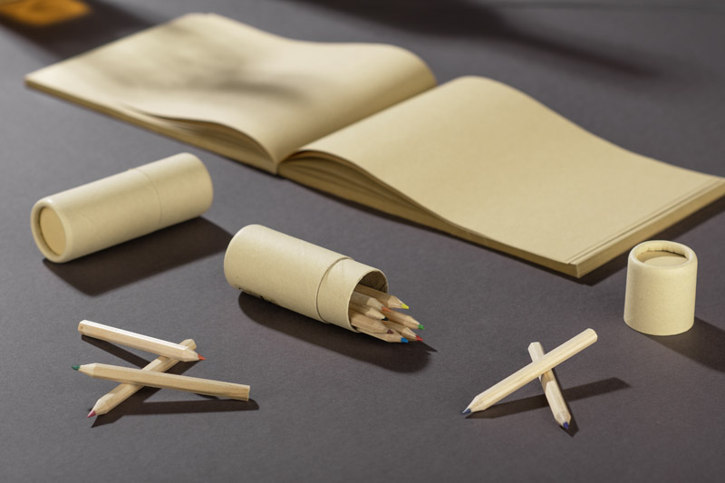 Zestaw REDKO to 12 drewnianych kredek zapakowanych w tekturową tubę.