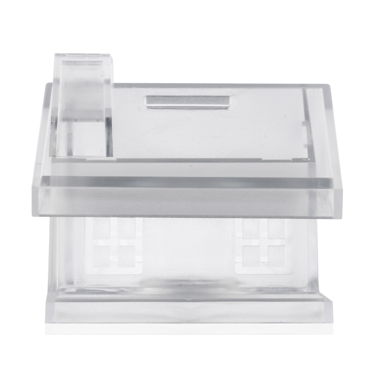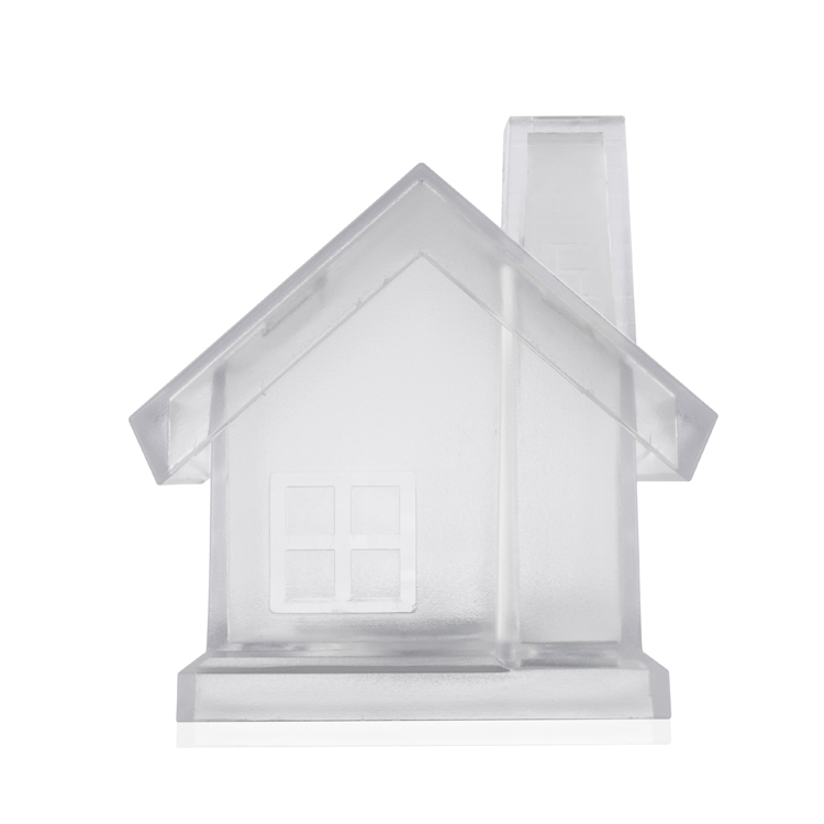 Skarbonka w kształcie domku wykonana z półprzezroczystego tworzywa. Od spodu posiada zamykany otwór pozwalający wyciągać oszczędności. Nadruk logo wykonamy techniką tampodruku.