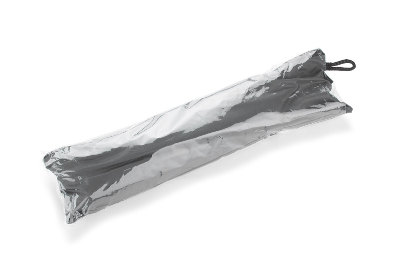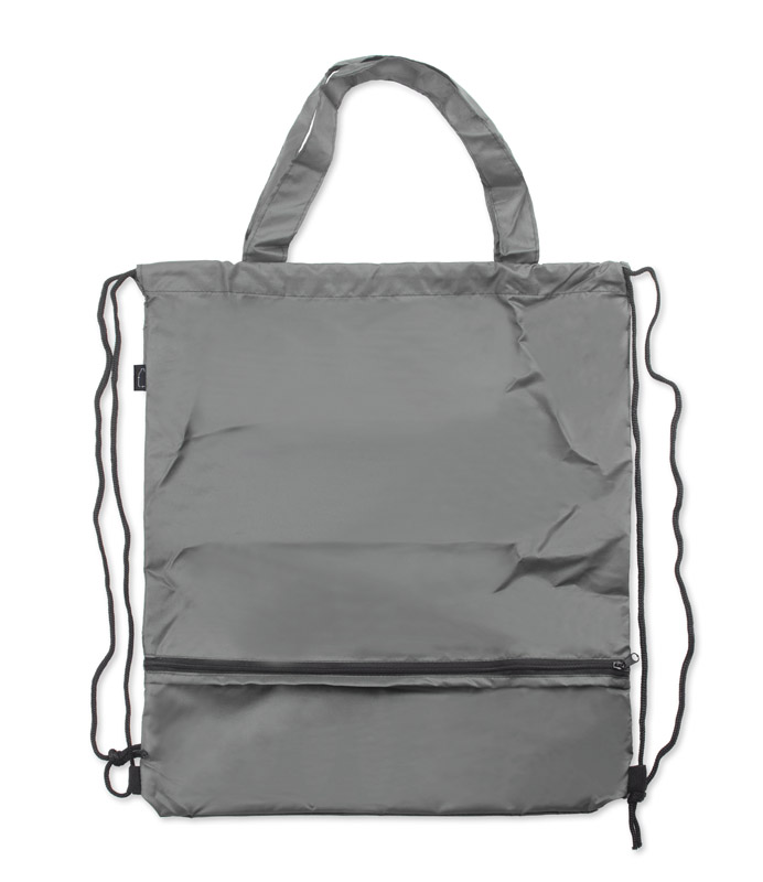 Worek na sznurkach z parasolem RAINY wykonany jest z poliestru RPET, co czyni go bardziej przyjaznym środowisku. Środek worka jest jednokomorowy. Oprócz tradycyjnych sznurków posiada jeszcze rączki o długości 44 cm, dzięki czemu może być używany także jako torba na zakupy. Na dole worka znajduje się zamykana na zamek kieszeń, w której schowany jest dołączony do zestawu parasol, także wykonany z poliestru RPET. Parasol jest otwierany i zamykany ręcznie. Maksymalny udźwig worka to około 3 kg. Wymiary produktu: worek: 370 x 410 mm, parasol: ⌀ 990 mm, dł. 550 mm (złożony: 240 x 60 x 50 mm)