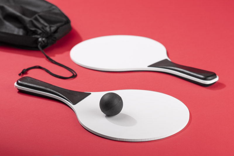 Zestaw rakietek plażowych TINES to propozycja świetnej zabawy na świeżym powietrzu. Zapakowany w woreczek ułatwiający zabranie rakietek ze sobą w dowolne miejsce. Do zestawu dołączona jest piłeczka. Wymiary produktu: 185 x 320 x 19 mm (rakietki); 280 x 400 x 0,5 mm (worek)
