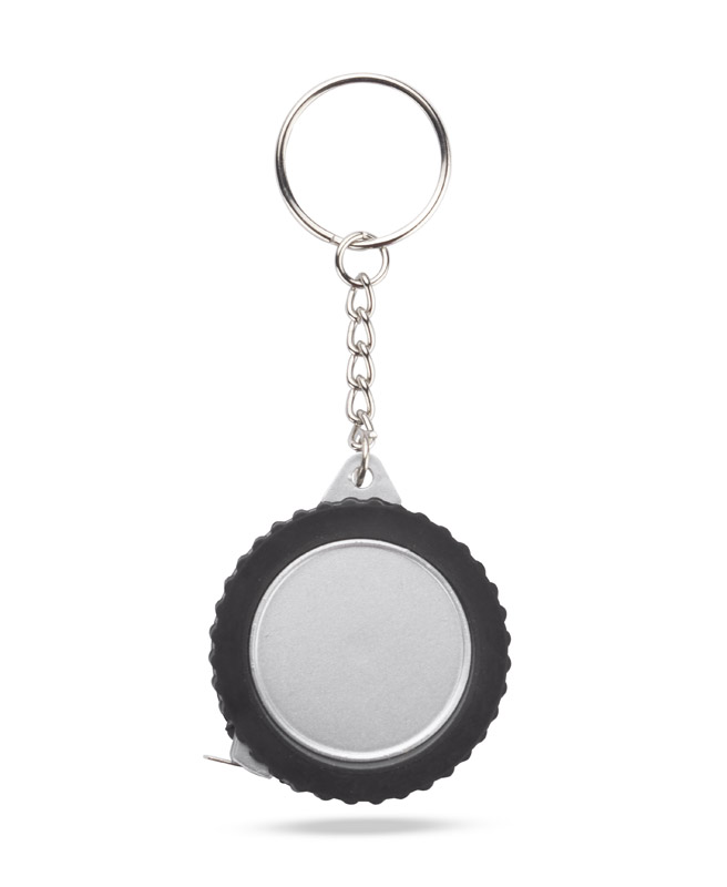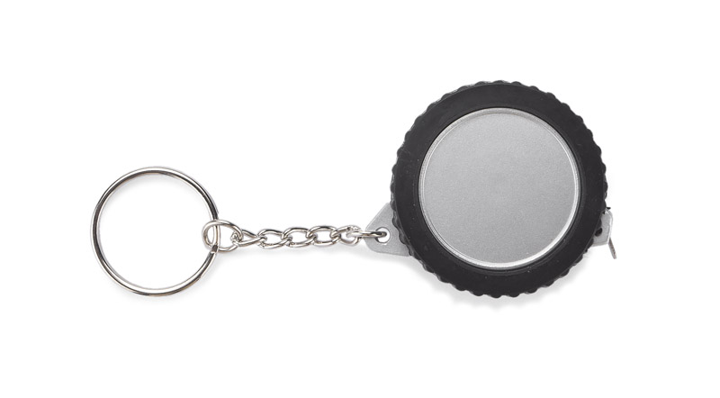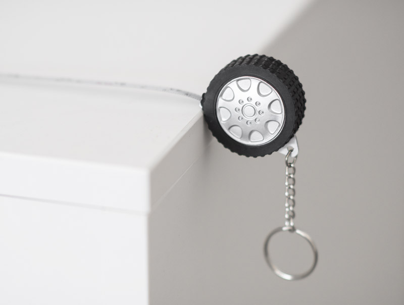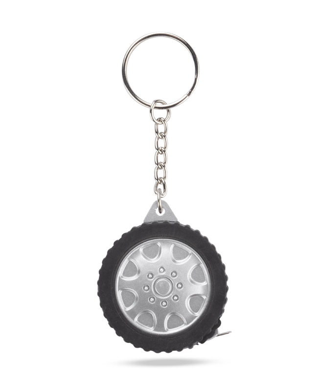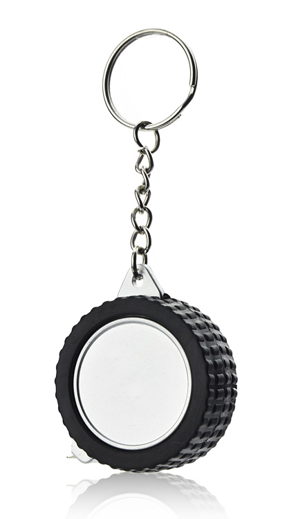 Breloczek w kształcie opony, z miarką o długości 1 metra. Wykonany z tworzywa, nadruk wykonujemy na rewersie.