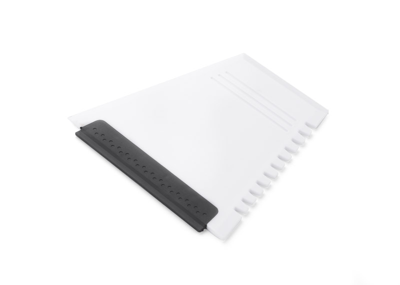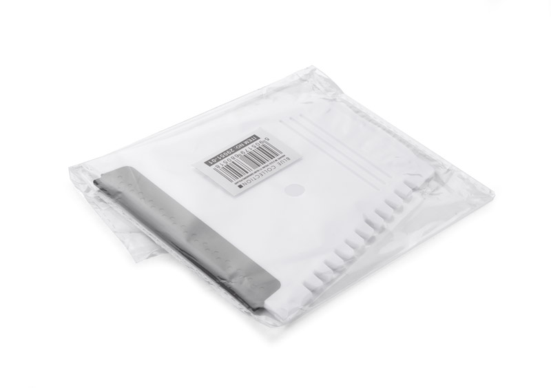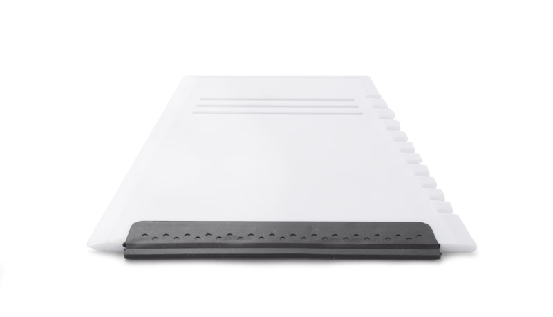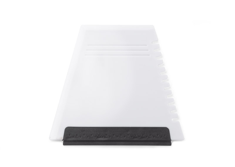 Skrobaczka do szyb z trzema końcówkami - płaską, ząbkowaną oraz gumową. Wykonana z tworzywa nietransparentnego.