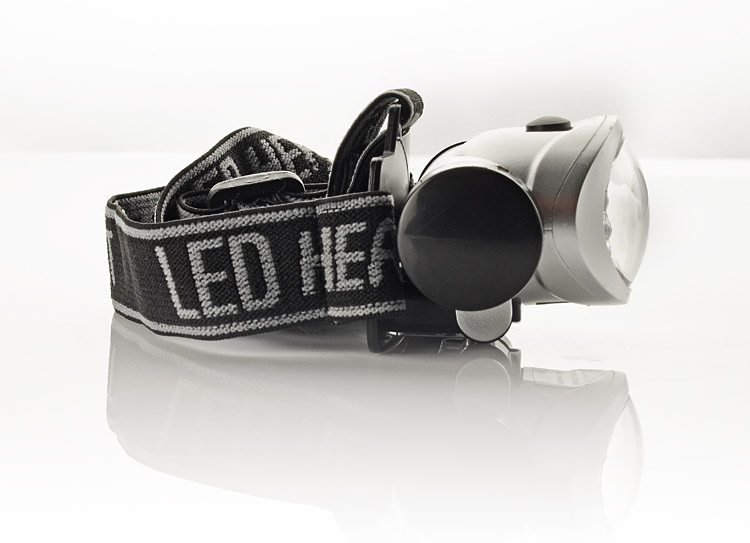 Praktyczna latarka czołowa wyposażona w 8 diod LED. Mocowanie na wytrzymałym i elastycznym pasku z regulacją długości. Posiada kilkustopniową regulację kąta nachylenia oraz 3 tryby świecenia: 2, 4 lub 8 diod. Latarka zasilana jest trzema bateriami AAA. Gadżet może być przydatny zarówno podczas turystycznych wędrówek jak i przy domowych pracach.