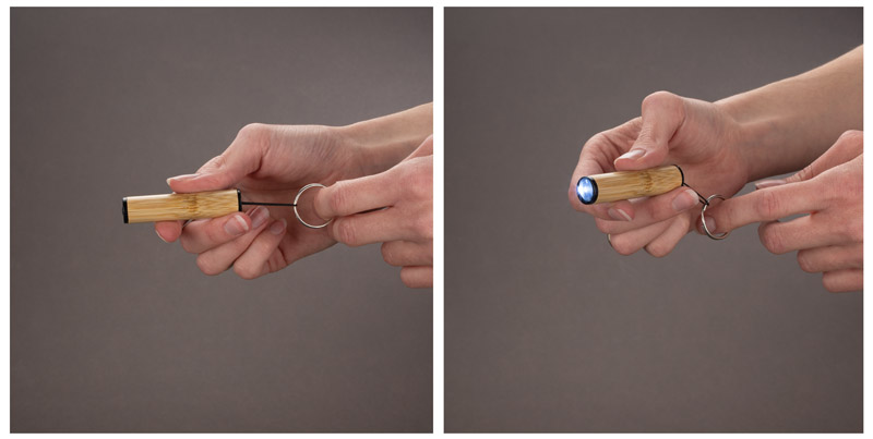 Bambusowa latarka DULO w formie breloka to praktyczny gadżet reklamowy. Wykonanie z bambusa idealnie wpisuje się w obecne trendy.