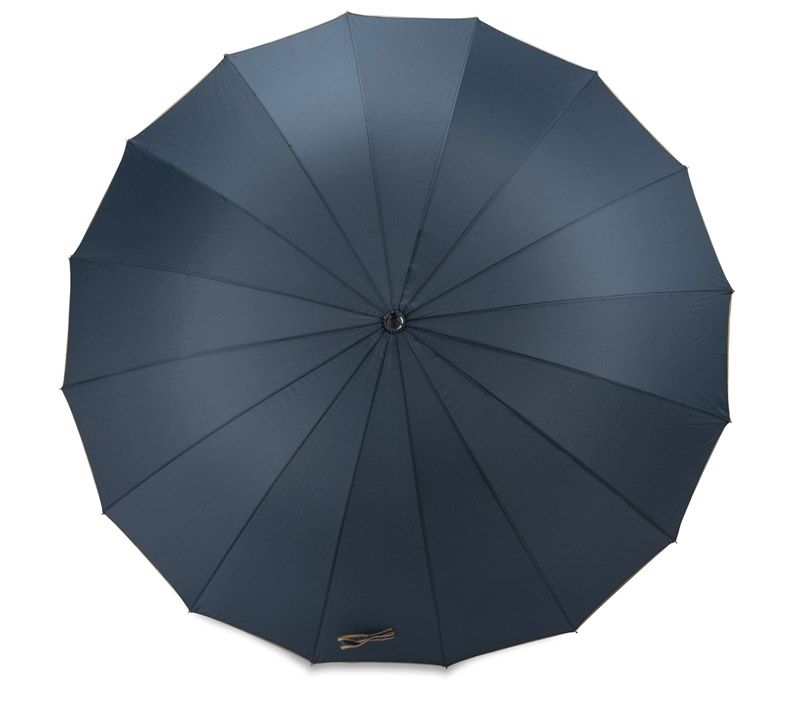 Bardzo elegancki parasol manualny, szesnasto panelowy, zakończony drewnianą zakrzywioną rączką. Wykonany z materiału typu pongee 190 T. Śr czaszy po rozłożeniu to 112 cm, długość złożonego parasola to 90 cm. Szerokość panelu wynosi 22 cm. Nadruk logo wykonamy na czaszy parasola metodą sitodruku.